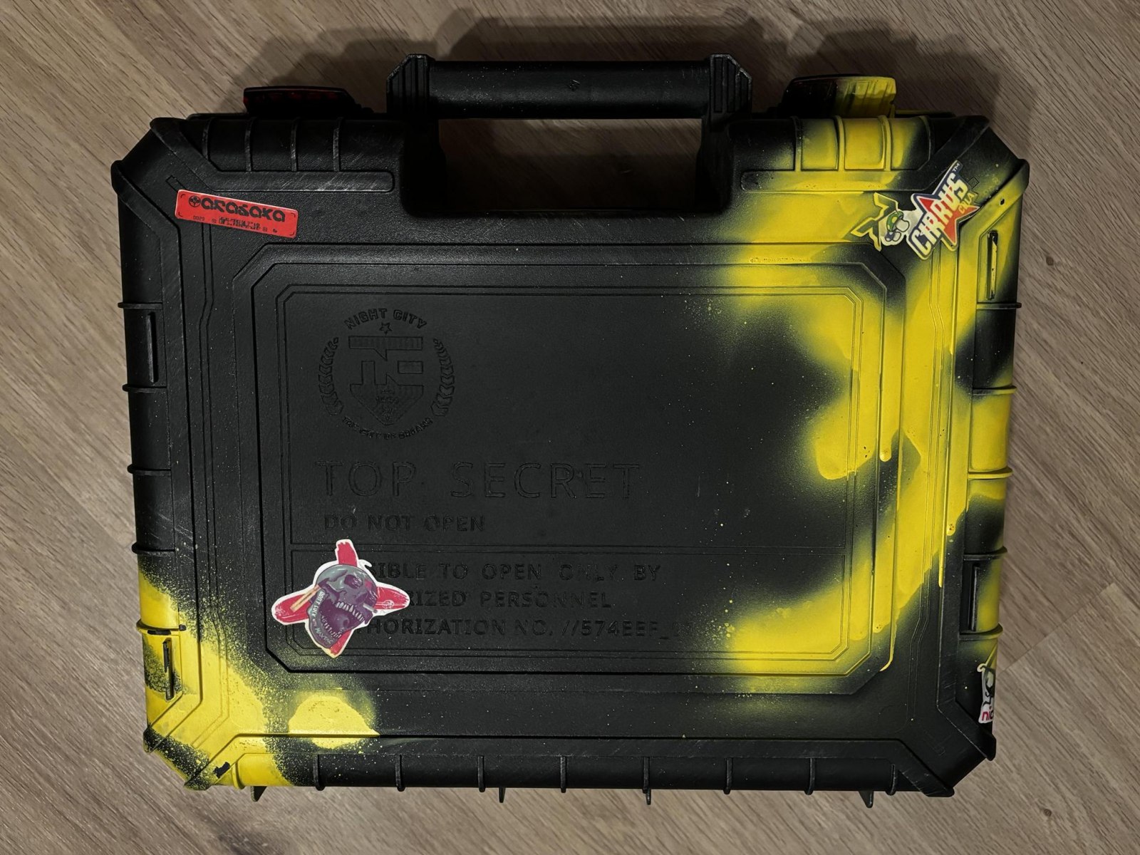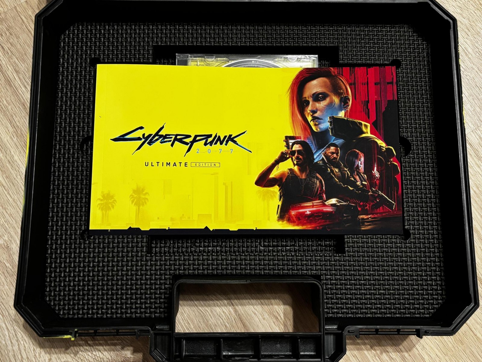 Otrzymaliśmy niesamowity, stylizowany na zużyty sprzęt militarny „Top Secret” case. Walizka robi ogromne wrażenie – te żółte akcenty i „brudne” wykończenie idealnie oddają klimat gry. A co w środku? Same dobrocie: