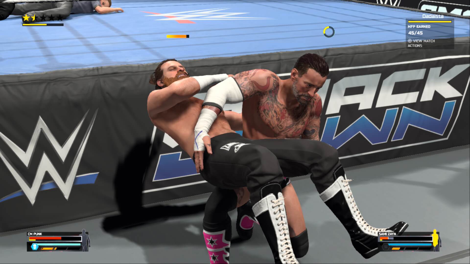 Pod względem muzyki również jest solidnie. W grze usłyszymy oficjalne utwory znanych wykonawców, które towarzyszą nam głównie podczas nawigacji po menu. Na liście znaleźli się m.in. Eminem, Babymetal czy Electric Callboy. Dobór kawałków dobrze wpisuje się w klimat WWE i dodaje energii. Osobiście nie mam powodów do narzekań – choć, jak wiadomo, o gustach muzycznych się nie dyskutuje.