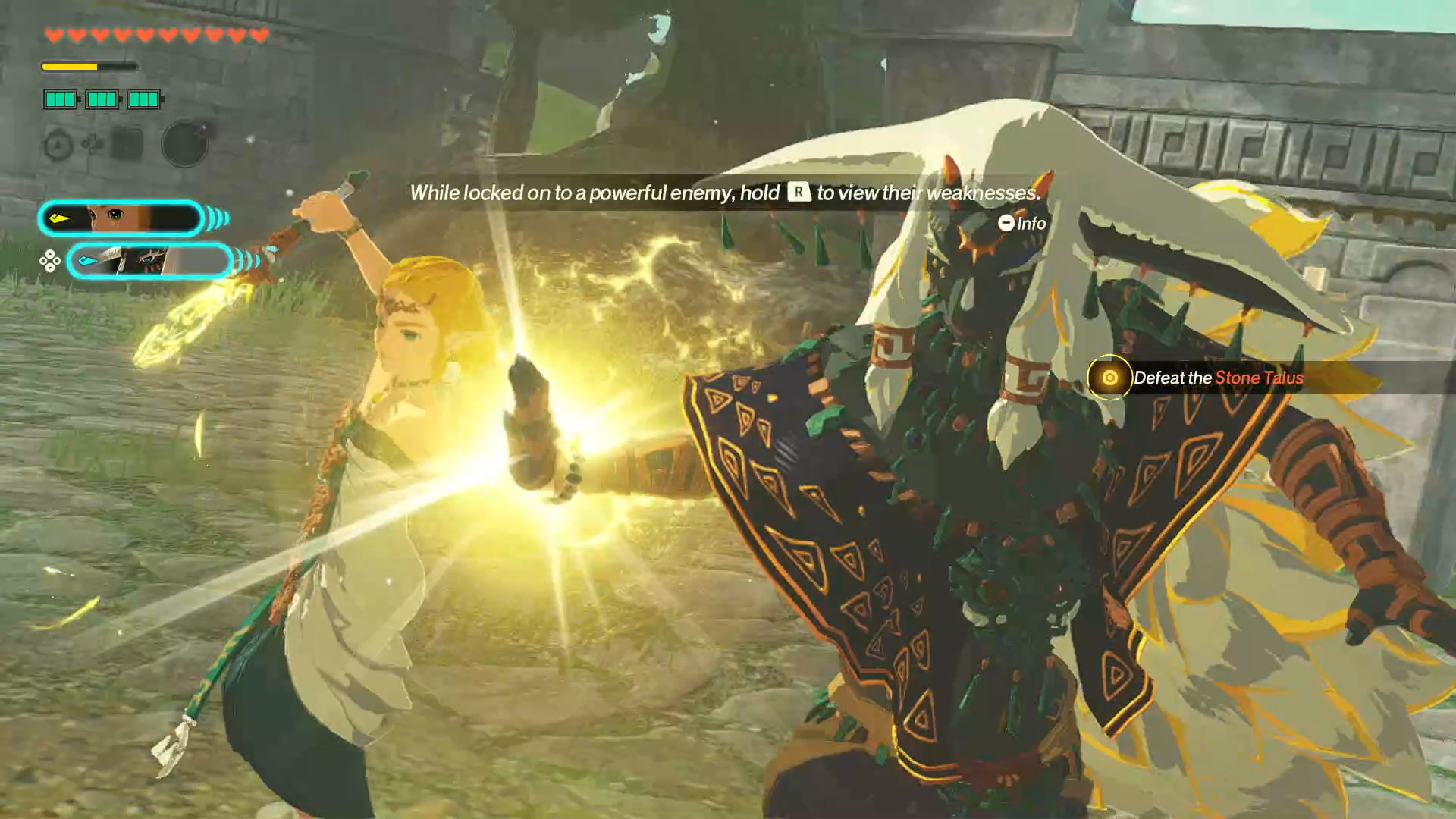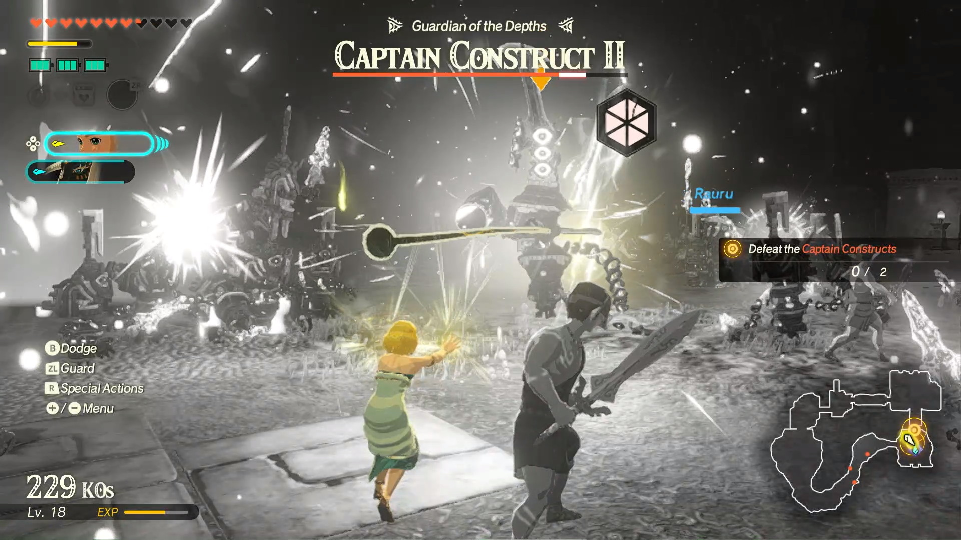Gra próbuje poradzić sobie z tym problemem, wprowadzając mechaniki takie jak quick-time eventy przy walce z potężniejszymi przeciwnikami, ataki specjalne indywidualne lub charakterystyczne dla konkretnej dwójki bohaterów. Na plus zasługuje też możliwość wykorzystania znanych z TotK przestarzałych mechanizmów Zonai, które w czasach akcji Age of Imprisonment wiodą przecież swój prym! Dzięki temu podczas rozgrywki mamy okazję korzystać z szerokiego wachlarza broni Zonai – od miotaczy płomieni po odpychające przeciwników wiatraczki.
