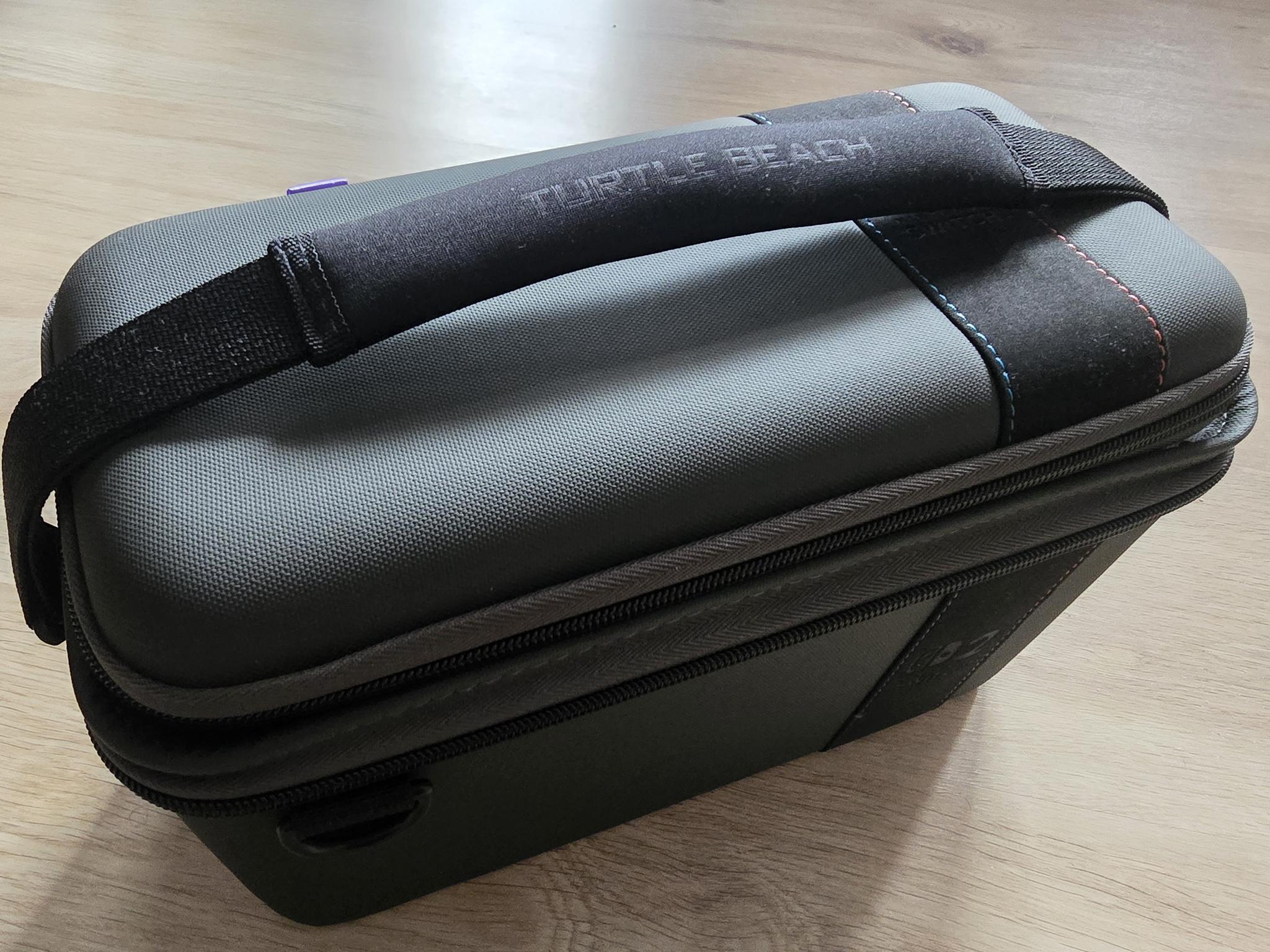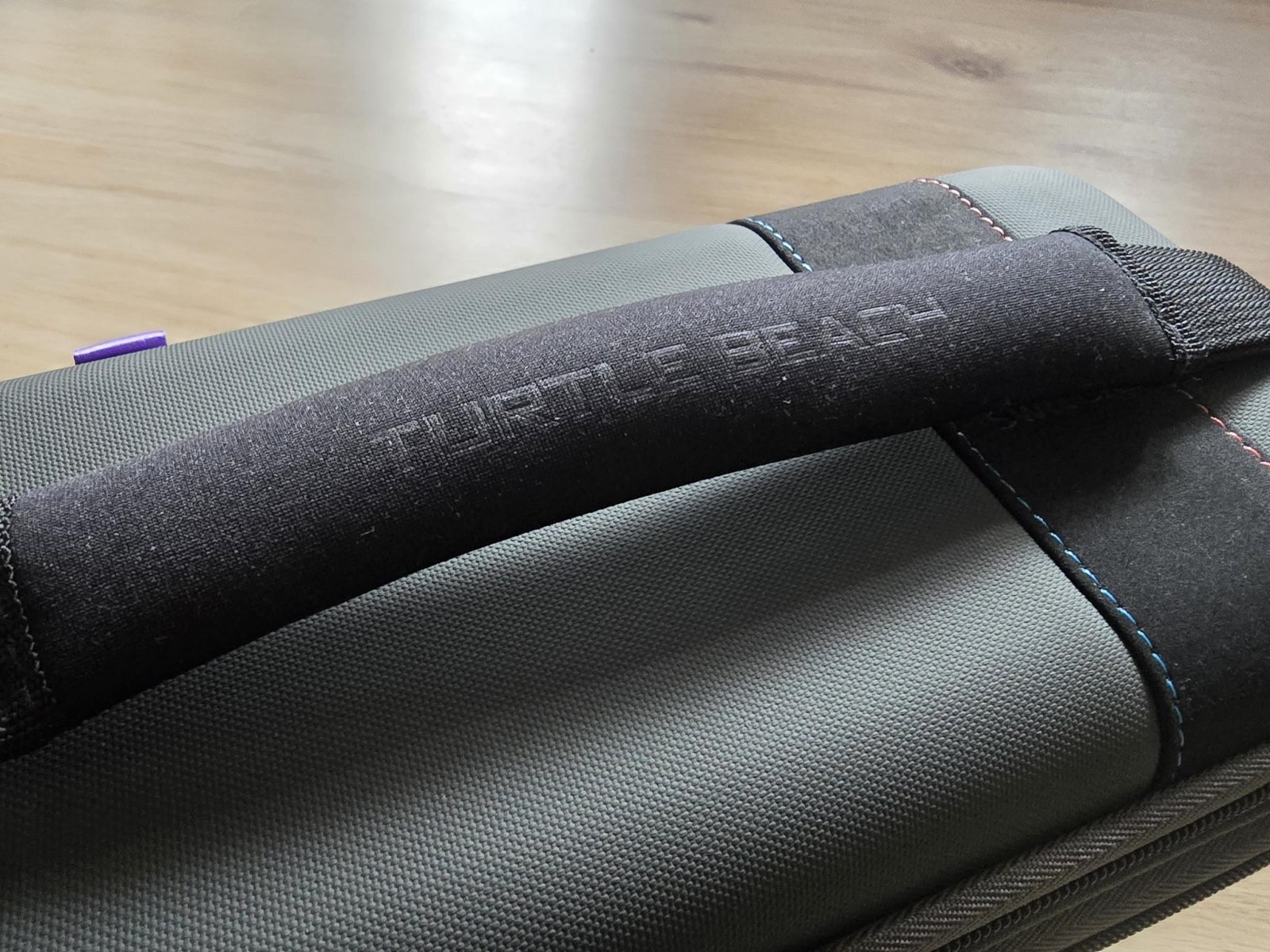 Prawdziwym game-changerem jest jednak dolna sekcja. Turtle Beach nie poszło na łatwiznę, dając nam po prostu „worek” na kable. Wnętrze jest precyzyjnie wytłoczone, co oznacza, że każdy element zestawu ma swoje dedykowane gniazdo. Dzięki temu nic nie lata luzem podczas transportu.