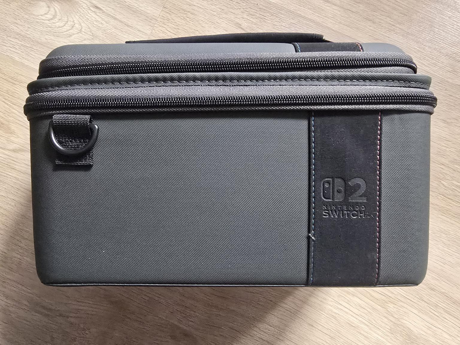 Pierwsze wrażenie po wyjęciu PlayTreka z pudełka to solidność. Mamy tu do czynienia z produktem oficjalnie licencjonowanym przez Nintendo, co zazwyczaj zwiastuje idealne dopasowanie do wymiarów sprzętu. Design utrzymany jest w estetyce „tactical” – dominuje szarość i czerń, przełamana charakterystycznym, pionowym pasem z akcentami w kolorach neonowego błękitu i czerwieni oraz tłoczonym logo nowej konsoli.
