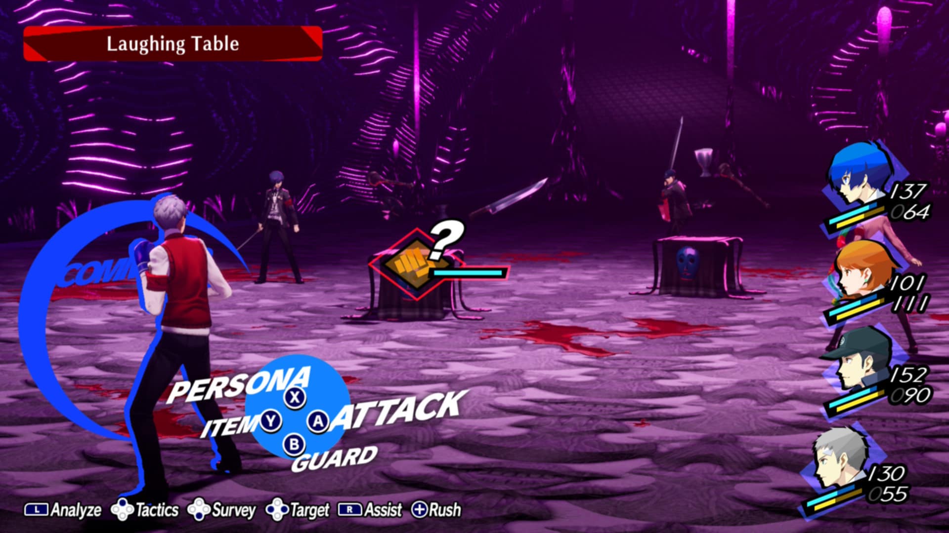 W trakcie postępów fabularnych uzyskamy moc Theurgy – specjalne ataki ładowane w trakcie walki, które ignorują odporności wrogów. Wspomniany nawigator ma własną Personę, która po jakimś czasie w walce może czasowo zwiększyć nasze statystyki, uleczyć lub wskazać odporności i słabości przeciwnika. Wszystko brzmi banalnie łatwo, ale wciąga bez reszty. Walka jest taktyczna i sprawia wiele przyjemności. W Tartarusie, gdy skończymy zwycięsko walkę, włącza się tak zwany Shuffle Time, w którym otrzymujemy kilka kart do wyboru i wybieramy jedną z nich. Możemy otrzymać nową Personę, więcej punktów doświadczenia, pieniądze itd.