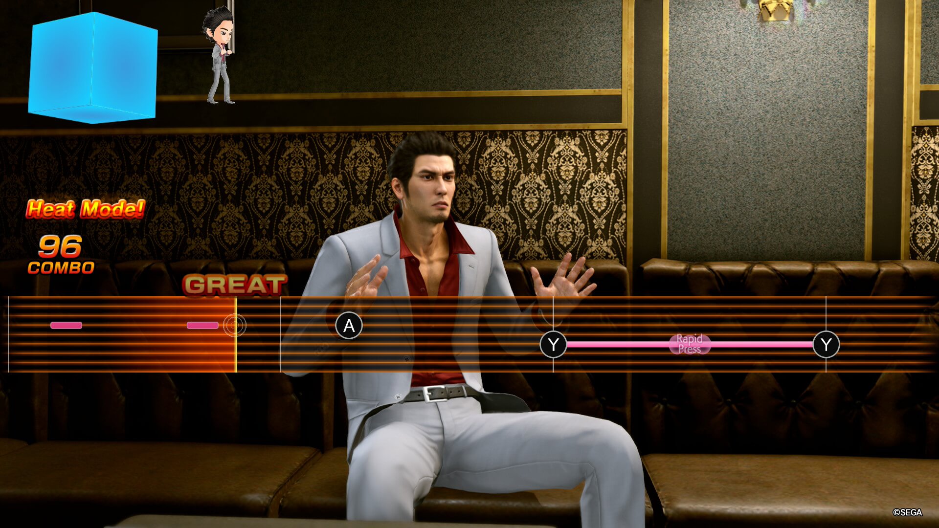 W kilku momentach zauważyłem drobne przycięcia, szczególnie podczas szybkiego biegu przez miasto. Nie psują samej rozgrywki, ale tę różnicę po prostu czuć. Najbardziej dało mi się to we znaki przy minigrze karaoke, która w serii zawsze była moją ulubioną aktywnością. Wybijanie rytmu stało się męczące, bo przesuwające się elementy traciły czytelność. Z kolei wybór „osobistych” piosenek Kiryu nie zrobił na mnie takiego wrażenia jak wcześniej, przez co bar karaoke tym razem zostawiłem z niedosytem.