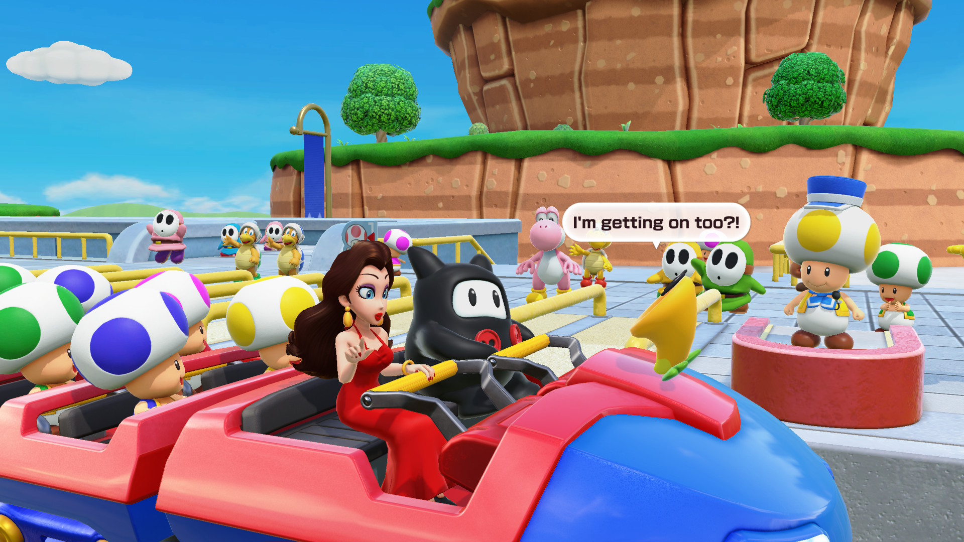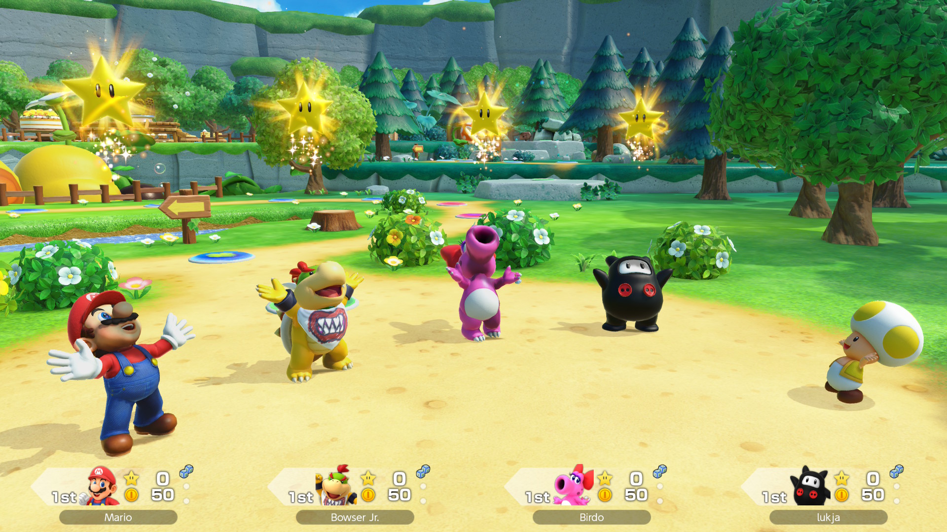 Zmiany zaszły również w klasycznym trybie Mario Party. Pojawił się wariant Frenzy Rules, który znacząco zwiększa dynamikę – rozgrywka zaczyna się na pięć tur przed końcem, a gracze startują z większą liczbą monet, jedną gwiazdką i dodatkowymi kostkami, co od razu intensyfikuje rywalizację. Nowością jest także możliwość gry w parach (2 vs 2), gdzie współpraca jest kluczem do zdobywania gwiazdek. Warto też wspomnieć o funkcji GameShare, która zawodzi. Pozwala udostępnić grę trzem innym konsolom z ograniczeniem tylko do jednej planszy.