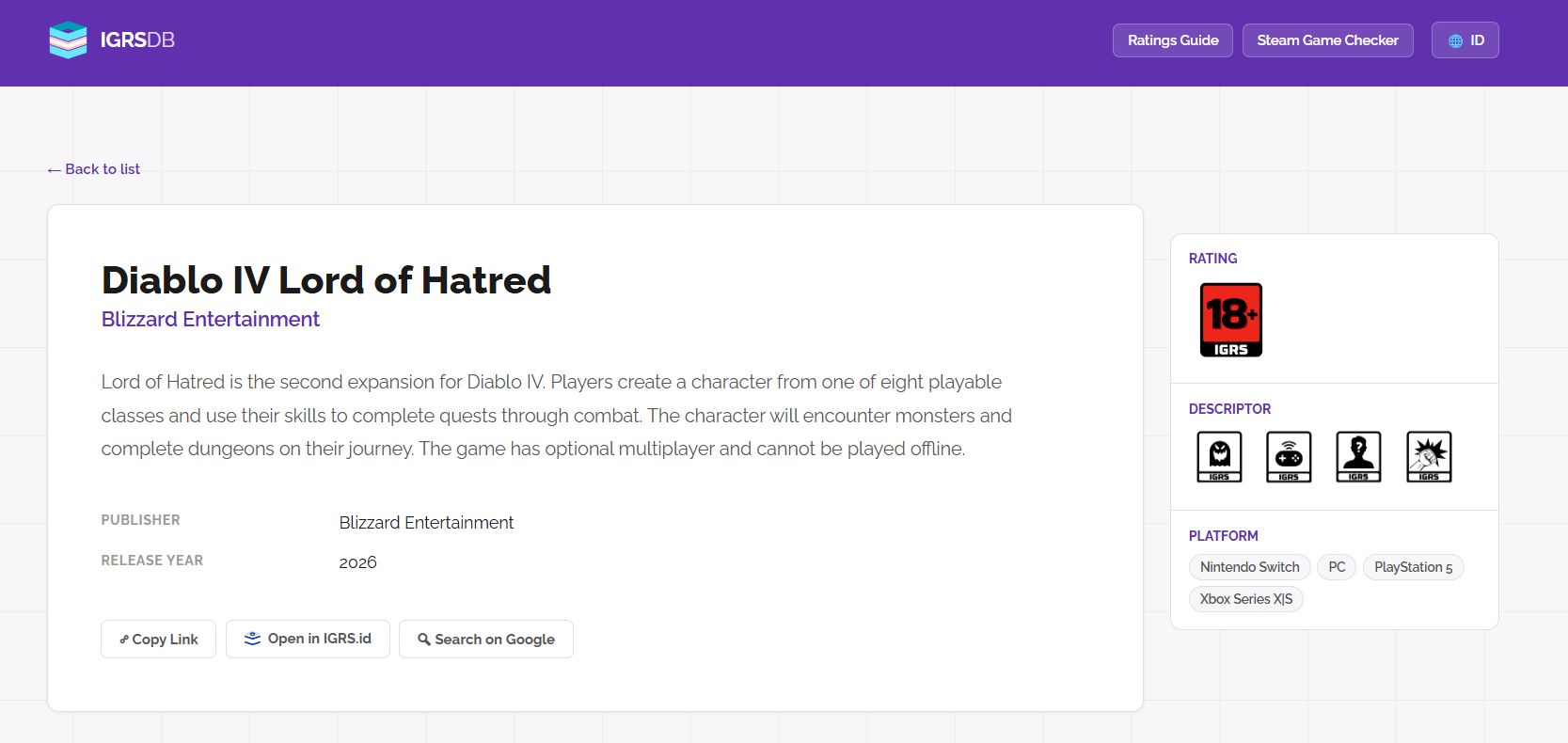 Po pierwsze, klasyfikacja została przypisana ogólnie do platformy „Nintendo Switch”, a nie bezpośrednio do Switcha 2. Po drugie, dotyczy ona dodatku (Lord of Hatred), a nie samej podstawowej wersji gry.