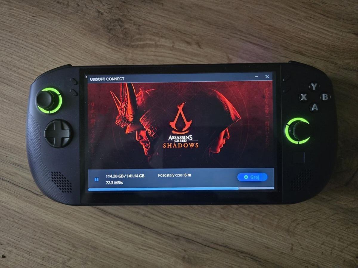 Największym argumentem zwolenników PC handheldów jest „Wolność”. Nie jesteś skazany na drogi eShop! Postanowiłem to sprawdzić na przykładzie Assassin’s Creed Shadows na platformie Ubisoft Connect. Na Switchu włożyłbym kartridż, lub odpalił cyfrowe wydanie. Tutaj zaczęła się droga przez mękę, która idealnie pokazuje, dlaczego PC handheldy to wciąż „sprzęt dla dłubaczy”.