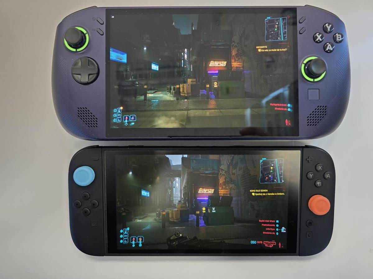Żeby nie być gołosłownym, zestawiłem oba sprzęty obok siebie w dwóch potężnych tytułach AAA: Cyberpunk 2077 oraz Assassin’s Creed Shadows. Jak możecie zobaczyć na załączonych zdjęciach porównawczych, przewaga technologiczna Legion Go S jest widoczna gołym okiem. Na Lenovo dostajemy wyższą rozdzielczość, ostrzejsze tekstury, lepsze cieniowanie i detale, które na Switchu 2 musiały pójść pod nóż optymalizatora. Legion potrafi wygenerować obraz, który na 8-calowym ekranie po prostu opada szczękę.