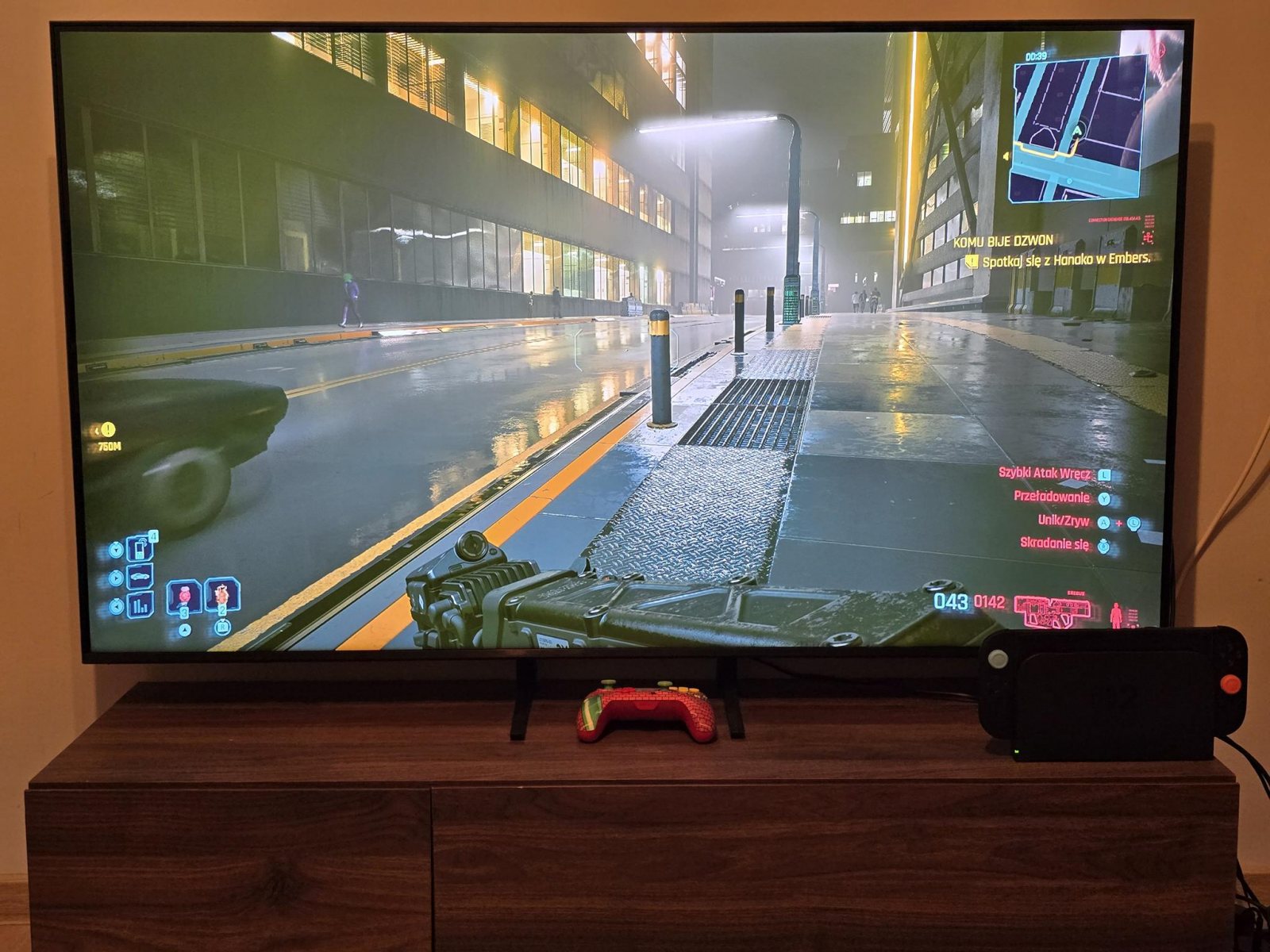 Poza graniem telewizor przez ten czas służył mi głównie do oglądania meczów piłkarskich, seriali i filmów. I tutaj moja ocena jest dość prosta: radzi sobie z tym dobrze, ale nie ma w tym żadnej magii. Dzięki wybitnej ostrości ruchu, mecze są oglądało się bardzo komfortowo – piłka podczas szybkich podań nie zamieniała się w rozmazaną plamę, a całe boisko pozostawało ostre. Jeśli chodzi o seriale i filmy, obraz jest czysty, jasny i przyjemny dla oka. Jednak poza płynnością, nie oferuje niczego, co szczególnie by zapadało w pamięć. Czarnie są dobre, ale nie tak głębokie jak w OLED-ach, a kolory – choć ładne – nie zachwycają w tym samym stopniu, co podczas grania. Wracając do głównej wady, oglądanie filmów w HDR bywało frustrujące z powodu opisanego wcześniej agresywnego ściemniania.