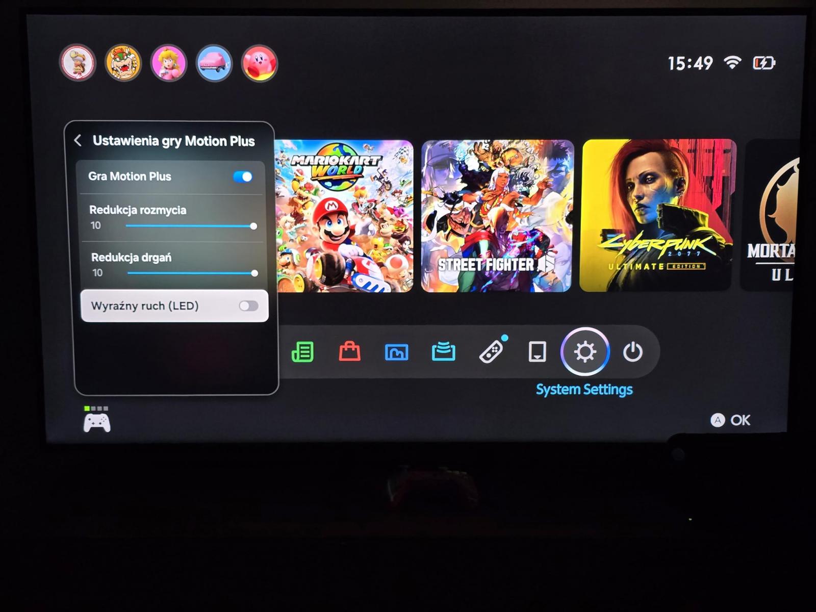 2. Doskonalej płynności ruchu 144 Hz: To jest game-changer. Natywna matryca 144 Hz w połączeniu z Upłynniaczem Ruchu 144 Hz i FreeSync Premium tworzy trio nie do zatrzymania. W Mario Kart World, gdy na starcie wszyscy zajeżdżają sobie drogę, a ekran wypełniają efekty, mój stary telewizor by się poddał. QN77F? Śmiga dalej, oferując absolutnie gładki, pozbawiony jakichkolwiek zrywań obraz. To nie jest subtelna różnica- to przepaść. Raz się przyzwyczaisz, nie dasz rady wrócić do 60 Hz.