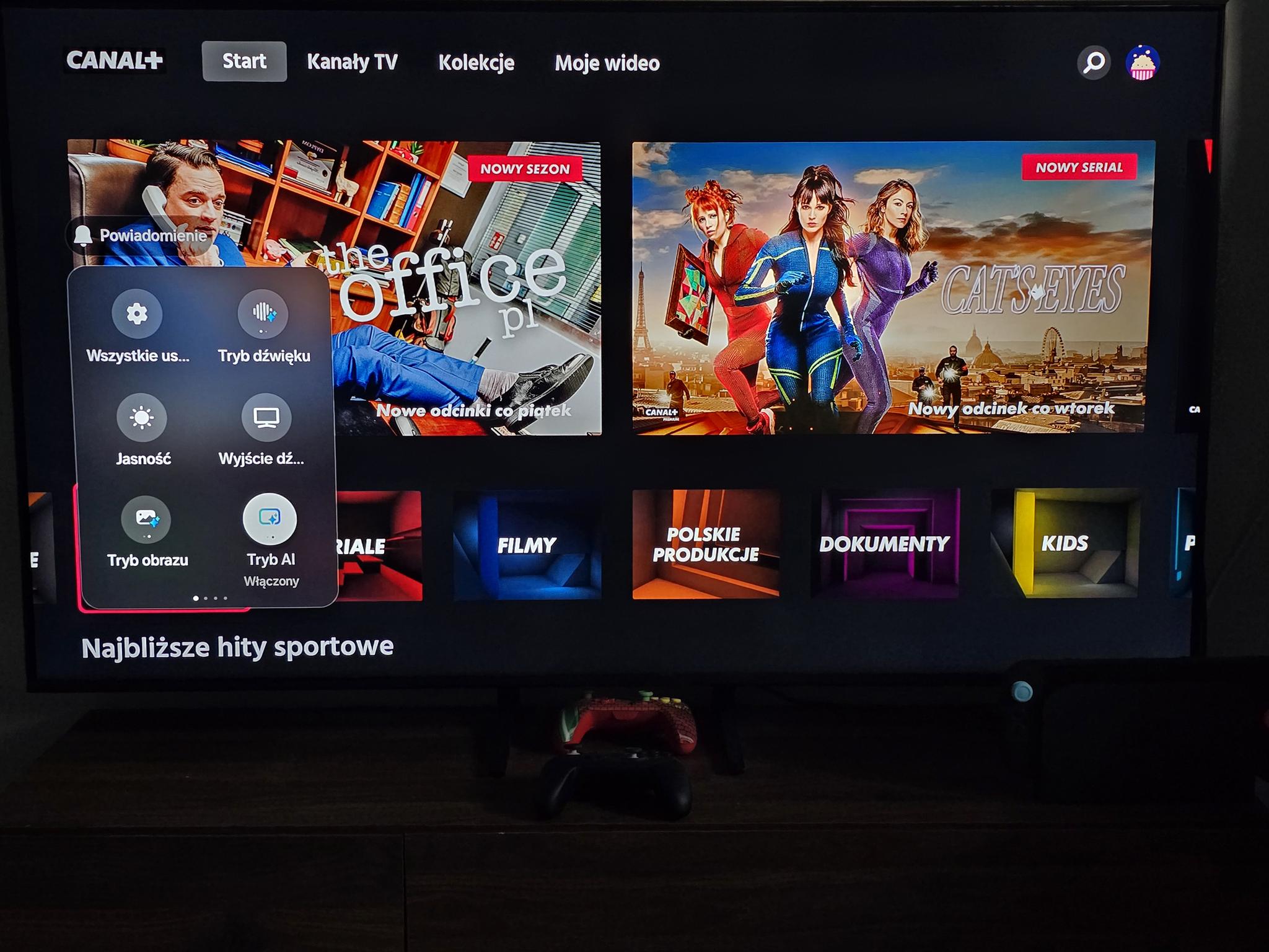 Wszystkie najfajniejsze funkcje tego telewizora napędza procesor AI NQ4 Gen2. To jest prawdziwy mózg całej operacji. Jego największą, codzienną zaletą jest świetny tryb AI, który analizuje zarówno Twoje otoczenie (jakie jest światło w pokoju), jak i oglądane treści, dostosowując ustawienia obrazu i dźwięku w czasie rzeczywistym. To naprawdę działa! Podczas grania w słoneczny dzień obraz był wyraźnie jaśniejszy, a wieczorem, przy przygaszonym świetle, stawał się bardziej nasycony i przyjazny dla oka. Nie muszę grzebać w ustawieniach – telewizor robi to za mnie i robi to dobrze.