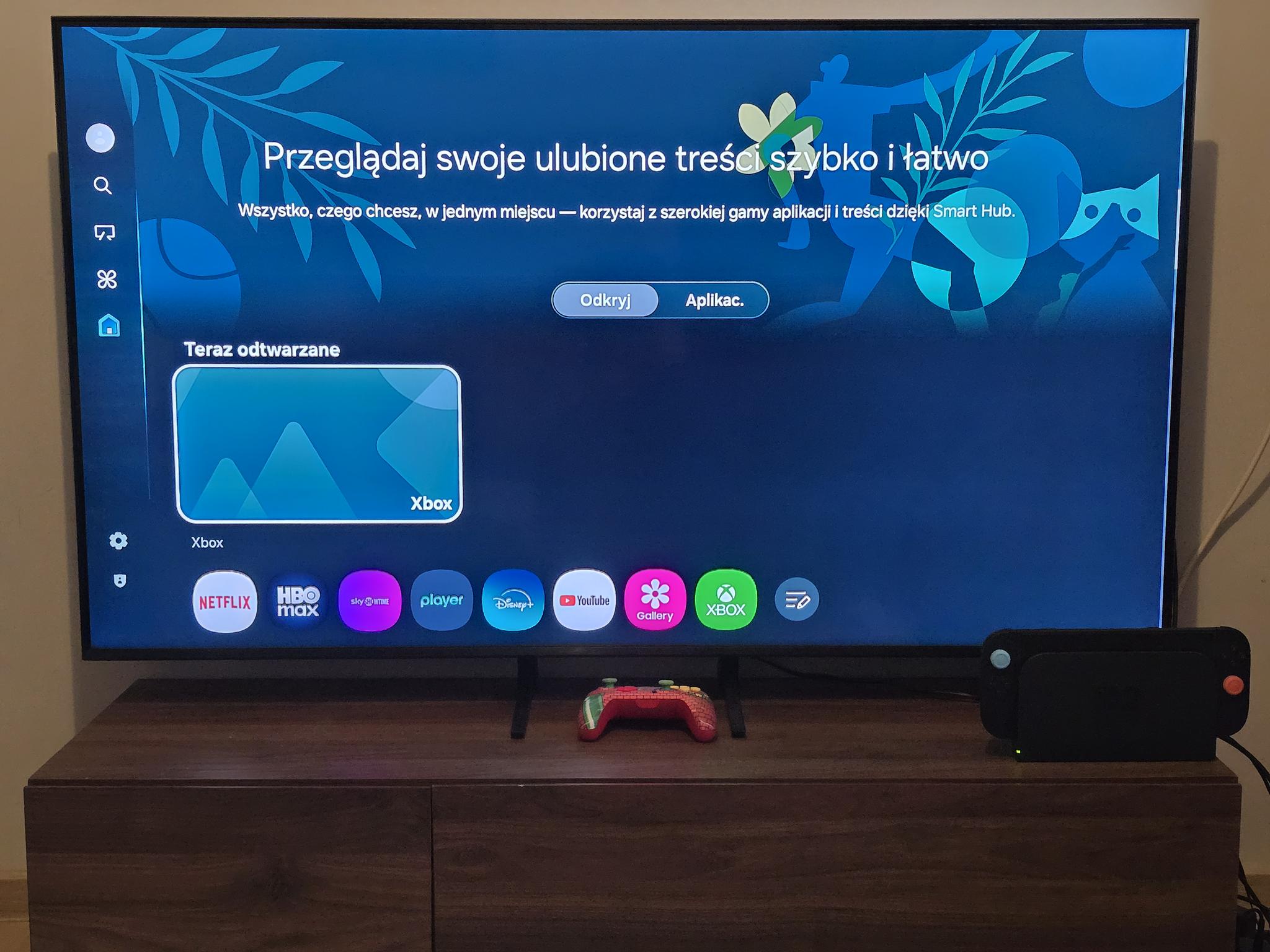 System Tizen w tym telewizorze to jeden z jego najmocniejszych, a często pomijanych, atutów. Działa niezwykle płynnie i responsywnie – nawigacja po menu, uruchamianie aplikacji czy przełączanie się między źródłami sygnału odbywa się bez najmniejszych opóźnień czy zacięć. Ta płynność idealnie współgra z bogactwem dostępnych treści. Wszystkie kluczowe aplikacje streamingowe są dostępne na tym modelu. Bez problemu pobrałem i uruchomiłem Netflixa, Disney+, YouTube, HBO Max, Amazon Prime Video oraz Player, a także aplikacje Polsat Box Go i TVP Sport do oglądania live streamów meczów. Dzięki temu telewizor w mgnieniu oka staje się kompletnym centrum multimedialnym dla całej rodziny, gdzie każdy znajdzie coś dla siebie, a brak jakichkolwiek problemów z wydajnością systemu sprawia, że korzysta się z tego po prostu przyjemnie. Warto na końcu dodać, że Samsung deklaruje aż 7-letnie wsparcie systemu najnowszymi aktualizacjami.