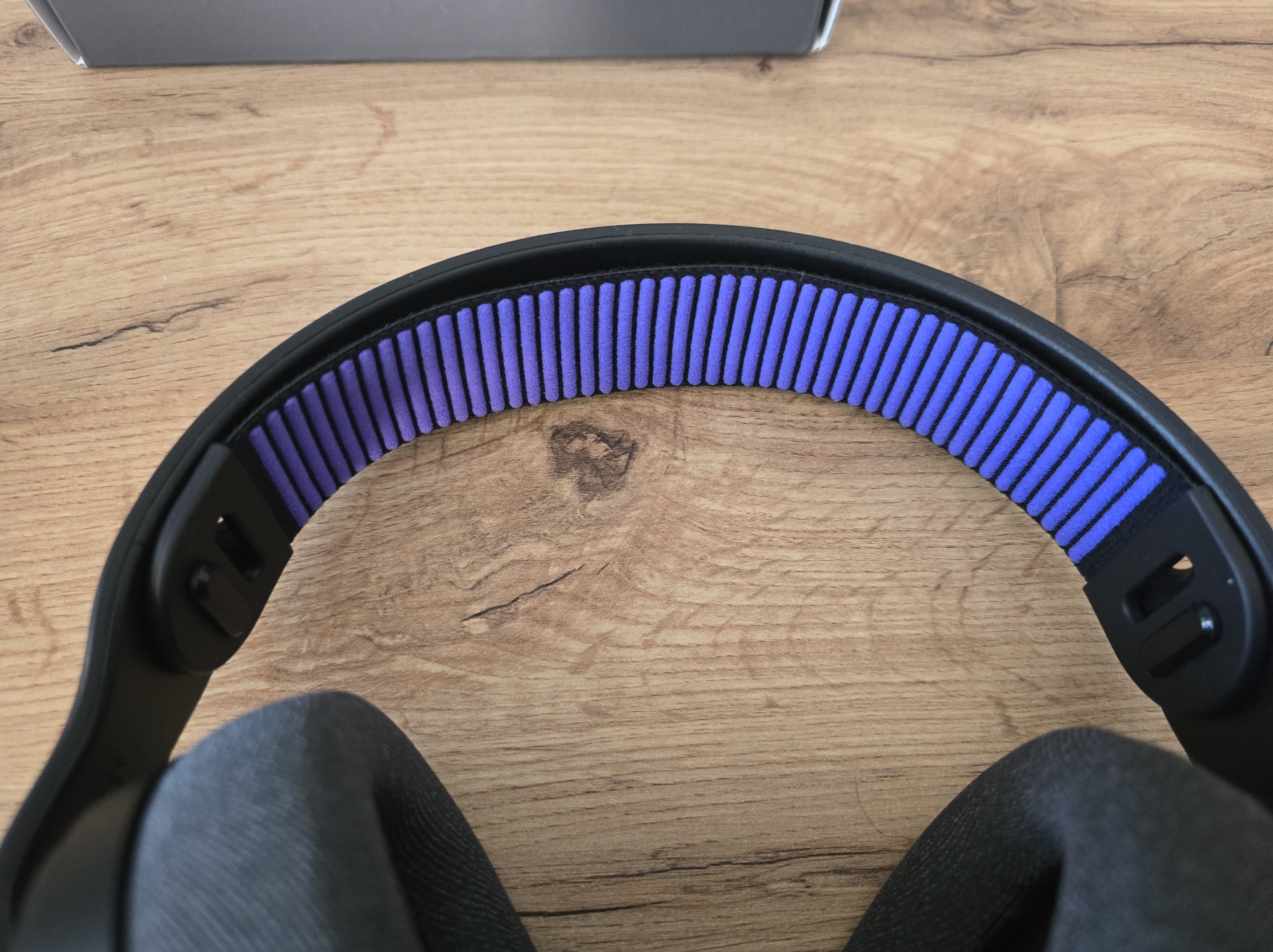 Gdy już przejdziemy do sedna użytkowania, czyli zakładania słuchawek na głowę, G522 odsłania swój kolejny, największy atut: absolutnie fenomenalny komfort. Kluczowe jest tutaj zrozumienie specyfiki konstrukcji. Logitech zastosował zawieszony, samo-dopasowujący się nagłówek. Jego elastyczna, włókno-nylonowa konstrukcja nie posiada tradycyjnych, stopniowanych zatrzasków. Zamiast tego, automatycznie i płynnie dopasowuje się do kształtu i rozmiaru głowy użytkownika, zapewniając idealny, równomierny rozkład nacisku na czubku głowy. To rozwiązanie eliminuje wszelkie „punkty uciskowe”, które są zmorą wielu innych modeli. Pałąk z elastycznym zawieszeniem można podregulować pod rozmiar głowy dzięki dodatkowym punktom mocowania. Plusik za to.