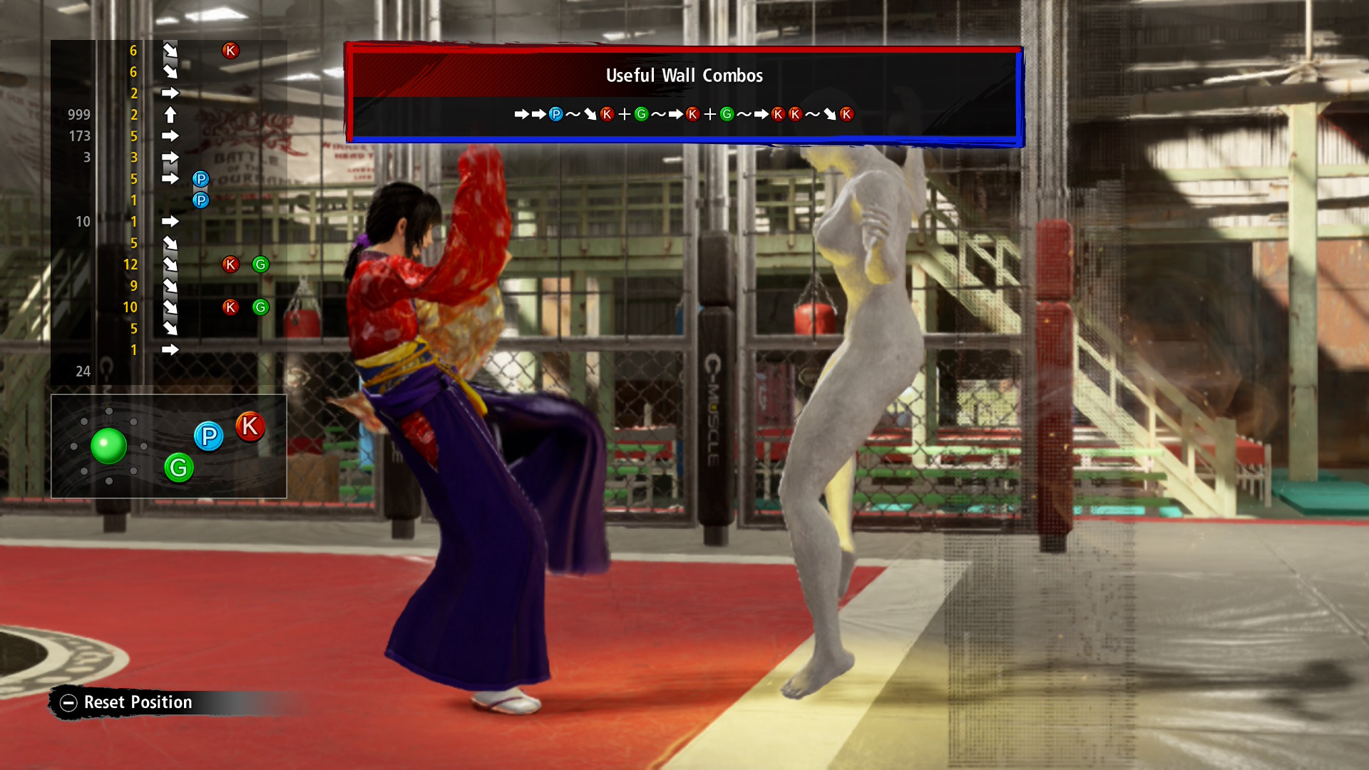 Tryb treningowy pozwala swobodnie testować techniki i sprawdzać ich działanie. Możemy podejrzeć szybkość ruchów dzięki informacjom o klatkach animacji. Gra pokazuje też, czy po ataku mamy przewagę. Wszystko podane jest w prostej formie, która w zupełności wystarcza na początek. Podczas demonstracji postaci zobaczymy, jak wyglądają ruchy. Szkoda tylko, że w trybie swobodnego treningu nie można tego podejrzeć w podobny sposób.